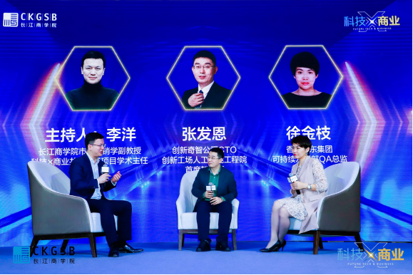 pp电子游戏官网官方网站市场营销学副教授、 科技X商业共创学习项目学术主任李洋教授,创新奇智公司CTO、创新工场人工智能工程院首席架构师张发恩先生和香港怡东集团的可持续发展部QA总监徐金枝女士对话交流。