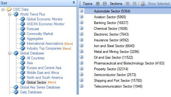 图书馆原订的CEIC行业库现在被该公司拆分合并到CEIC全球库和CEIC世界趋势数据库中,内容没有变化,但位置有所变更,具体的位置如下: